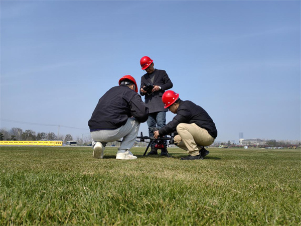 圖為合肥審計(jì)人員利用無(wú)人機(jī)勘測(cè)園林綠化施工現(xiàn)場(chǎng)