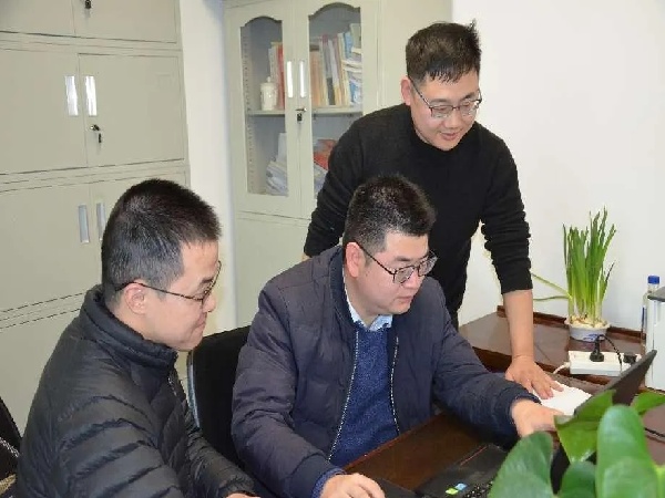 和同事討論相關(guān)審計情況(中間為龔智強)