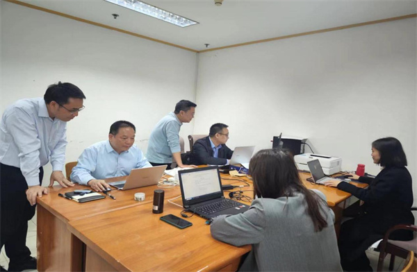 財(cái)政審計(jì)處審計(jì)人員在審計(jì)項(xiàng)目現(xiàn)場(chǎng)交流討論