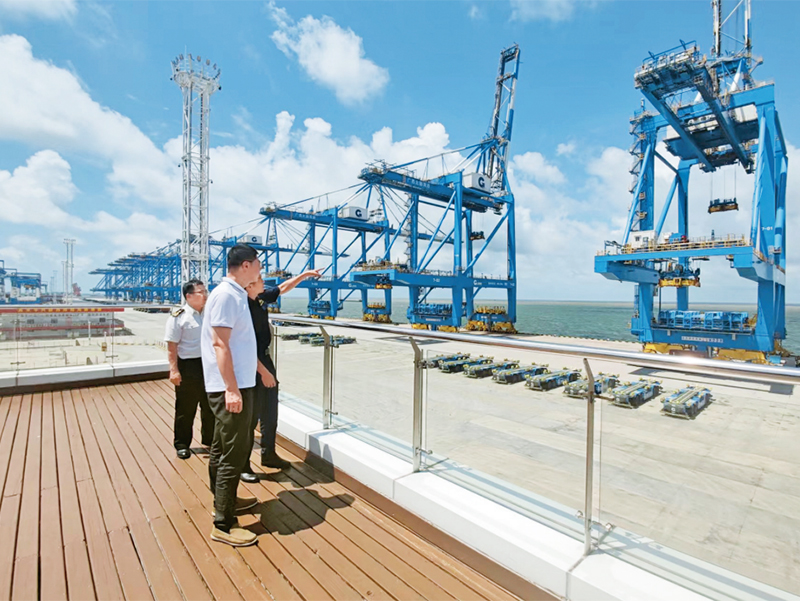 圖為2023年7月12日,審計(jì)署駐太原特派員辦事處在海關(guān)審計(jì)中,深入廣西欽州港自動(dòng)化碼頭,重點(diǎn)關(guān)注進(jìn)境貨物后續(xù)監(jiān)管,實(shí)地走訪進(jìn)境貨物加工企業(yè),調(diào)查了解海鐵聯(lián)運(yùn)運(yùn)行等情況。審計(jì)署供圖