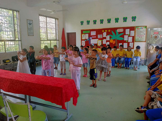 圖為和諧村扶貧助學(xué)義務(wù)輔導(dǎo)火炬班孩子們的結(jié)業(yè)表演現(xiàn)場(chǎng)