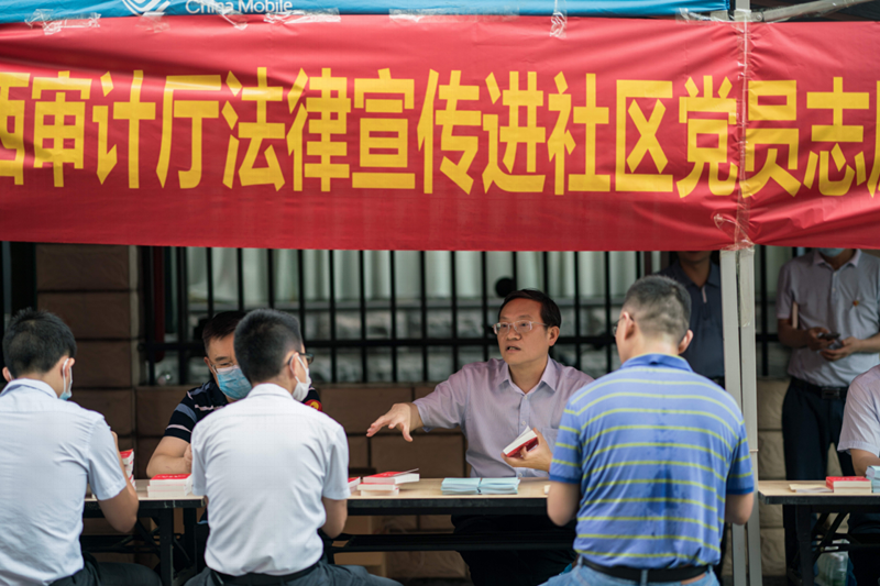 圖為審計干部深入社區(qū)宣傳民法典現(xiàn)場