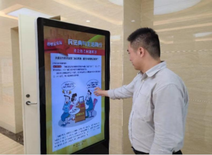 圖為審計(jì)干部正在通過(guò)電子屏學(xué)習(xí)民法典