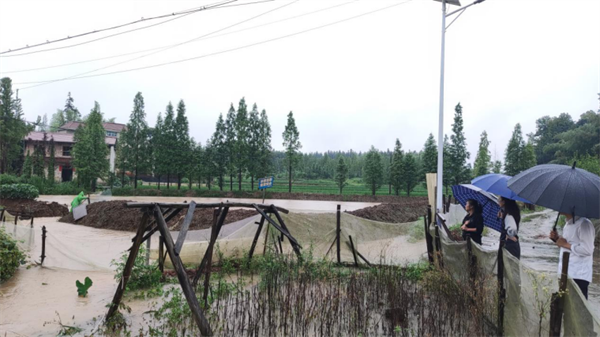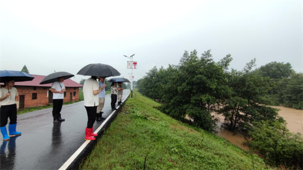 圖為修水縣審計(jì)局黨員干部在查看洪水情況