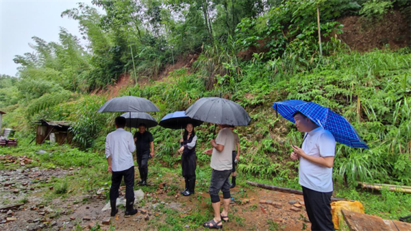 圖為江西省審計(jì)廳駐村工作隊(duì)在查看山體邊坡,排查風(fēng)險(xiǎn)隱患