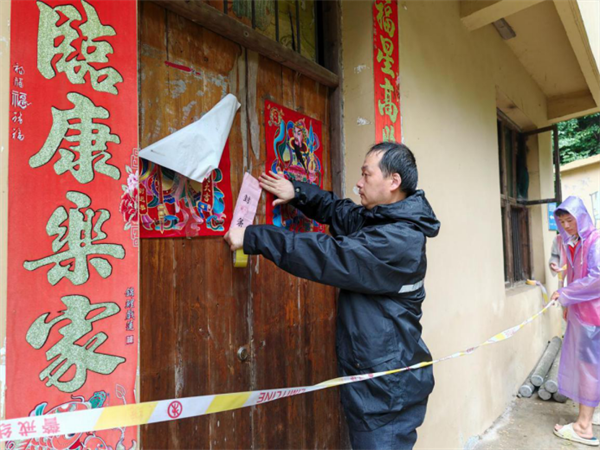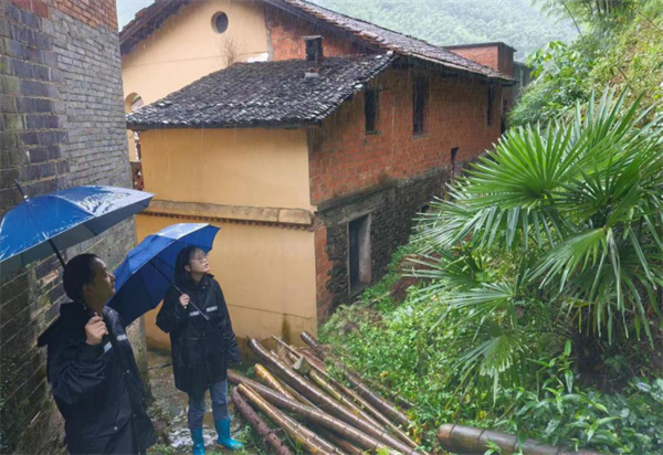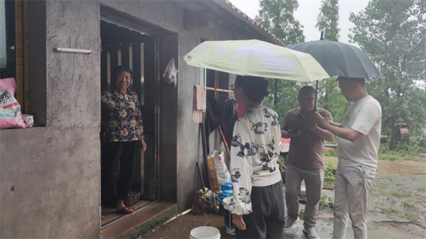 圖為江西省審計(jì)廳駐村工作隊(duì)在走訪獨(dú)居老人,查看防澇情況
