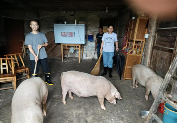 圖為修水縣審計(jì)局駐村幫扶干部幫低洼地段群眾將牲畜趕往安全地帶