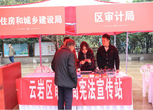 黔東南州審計局組織干部參加“12.4”國家憲法日法治集中宣傳活動?,F(xiàn)場向群眾發(fā)放憲法和民法典宣傳資料100余份,結(jié)合司法案例,以平實簡樸的語言向居民普及新中國憲法發(fā)展歷程、憲法知識,進一步宣傳習(xí)近平法治思想、黨的二十屆三中全會精神等,讓群眾聽得懂、學(xué)得會、用得上,營造尊憲崇法的良好社會氛圍。