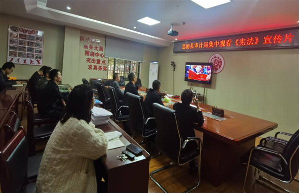 思南縣審計局通過黨組會、中心組學(xué)習(xí)會、干部大會等,開展憲法專題學(xué)習(xí),集中觀看憲法宣傳片。局領(lǐng)導(dǎo)班子成員結(jié)合分管工作,圍繞習(xí)近平法治思想開展專題研討,引導(dǎo)干部認真履行好審計監(jiān)督職責(zé)。