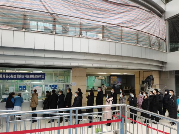 近日,審計署太原特派辦赴青海財政收支等項目審計組克服高寒缺氧等困難,在順利完成階段性審計任務(wù)、春節(jié)前返回太原之際,按照青海和山西兩省關(guān)于做好疫情防控的相關(guān)要求,組織全體參審人員,赴青海心血管病??漆t(yī)院進(jìn)行核酸檢測,并分批次進(jìn)行疫苗注射,為下一階段審計工作安全、順利開展打下了良好基礎(chǔ)。圖為審計組人員排隊做核酸檢測。(任晉晉)