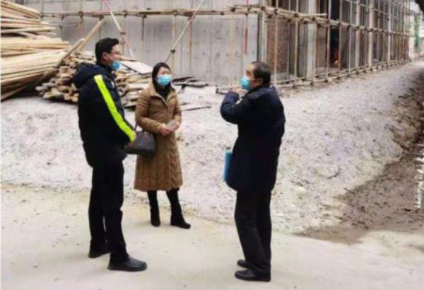 圖為審計人員實地了解某縣人民醫(yī)院發(fā)熱門診大樓現(xiàn)場