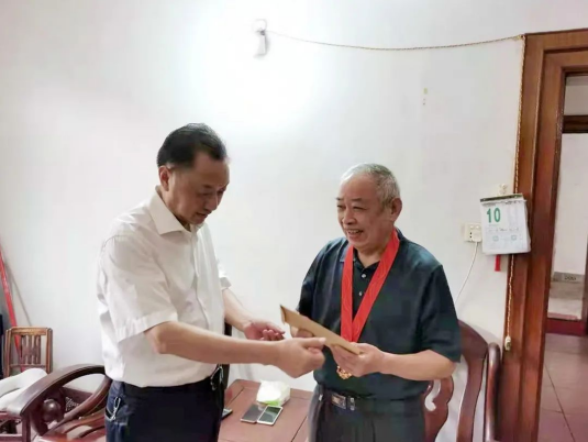 為年老體弱、行動(dòng)不便的老黨員上門頒發(fā)“光榮在黨50年”紀(jì)念章,傳遞黨的關(guān)懷與溫暖。