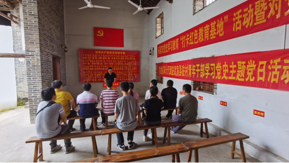 圖為派駐武宣縣風(fēng)沿村第一書記袁世政在桂中第一支部舊址交流學(xué)習(xí)黨史感想