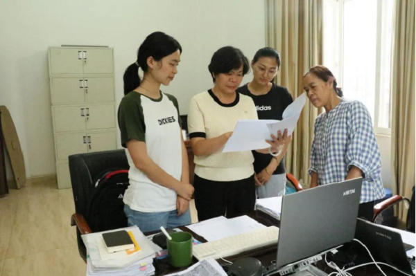 趙雪艷(左二)與同事們討論交流審計(jì)項(xiàng)目