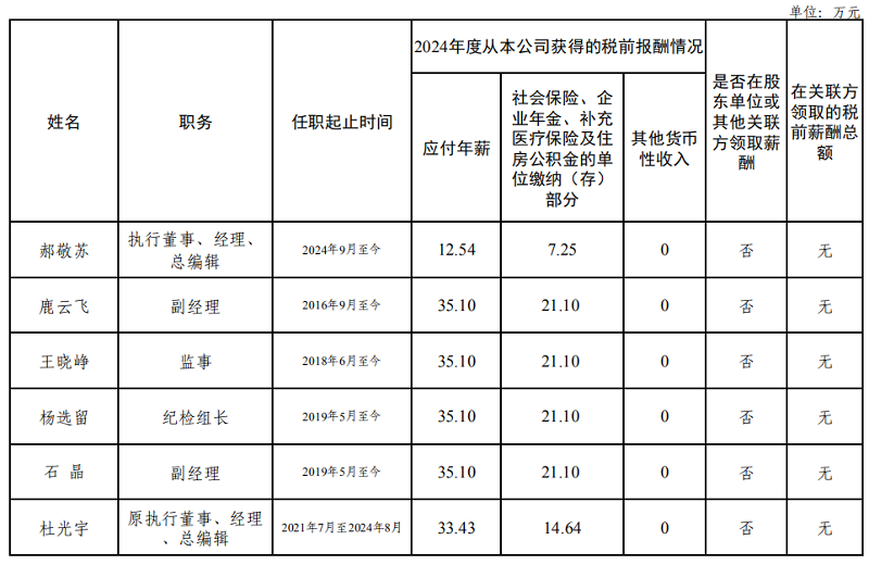備注:上表披露薪酬為企業(yè)負責人報告期內(nèi)全部應發(fā)稅前薪酬。