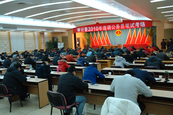 11月30日,審計(jì)署多功能廳里,來自全國地方審計(jì)機(jī)關(guān)和審計(jì)署駐地方特派辦的122名公務(wù)員,正在緊張地參加審計(jì)署2010年選調(diào)公務(wù)員考試。經(jīng)過這次筆試和之后進(jìn)行的面試、心理素質(zhì)測試、組織考察等程序,將有20名左右同志脫穎而出,調(diào)到審計(jì)署機(jī)關(guān)和派出審計(jì)局工作。
